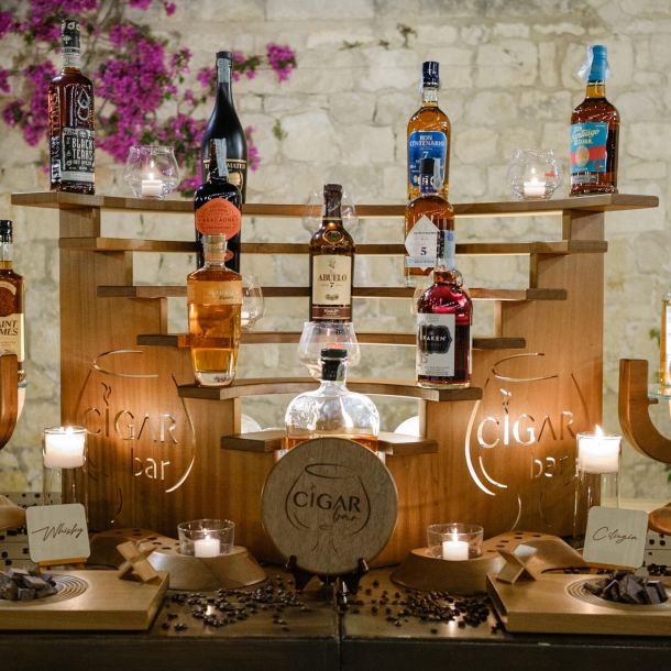 Completa l’esperienza del tuo tavolo sigari con la nostra selezione di rum premium e distillati d’eccellenza. Offriamo un’accurata gamma di rum invecchiati e whisky pregiati, perfettamente abbinati alla degustazione dei migliori sigari. Il nostro servizio include la presentazione professionale delle bottiglie, bicchieri da degustazione e la consulenza di esperti. Ideale per eventi che desiderano offrire agli ospiti un momento di puro piacere, combinando l’arte del fumo lento con distillati di carattere.