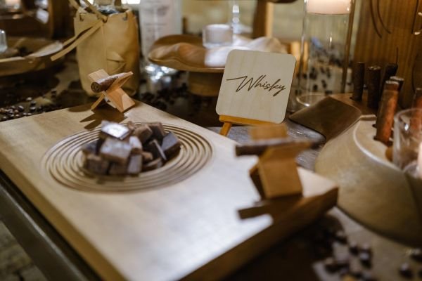 Arricchisci il tuo Cigarbar con la nostra selezione di cioccolato fondente artigianale, il perfetto complemento alla degustazione di sigari. Proponiamo tavolette di cioccolato extra dark e dolcezze selezionate che esaltano i sapori complessi del tabacco. L'abbinamento cioccolato-sigaro è una tradizione raffinata che aggiungiamo al nostro servizio Cigarbar per matrimoni, eventi corporate e party esclusivi. Ogni dettaglio è curato per creare un'atmosfera elegante e sofisticata.